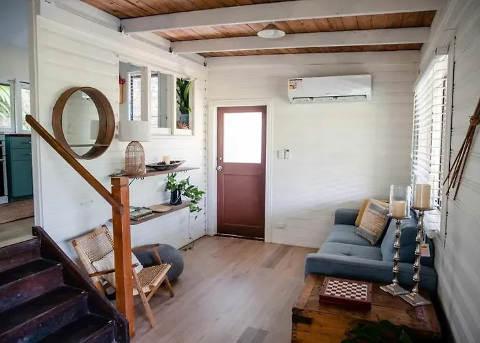 Staying at the spacious Birdsong Train Carriage Cabins Palmwoods apartment, guests can relax on a terrace 7 km from The Shed at Forest Glen.